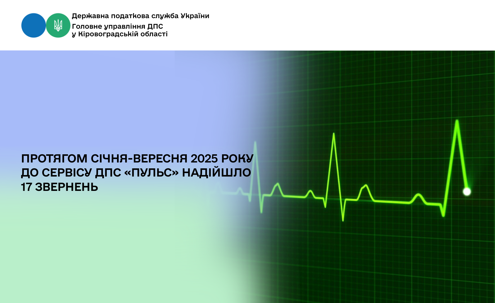 За інформацією сектору розгляду звернень громадян та доступу до публічної інформації управління організації роботи Головного управління ДПС у Кіровоградській області протягом січня - вересня 2025 року до сервісу ДПС «Пульс» надійшло 17 звернень за наступною тематикою: