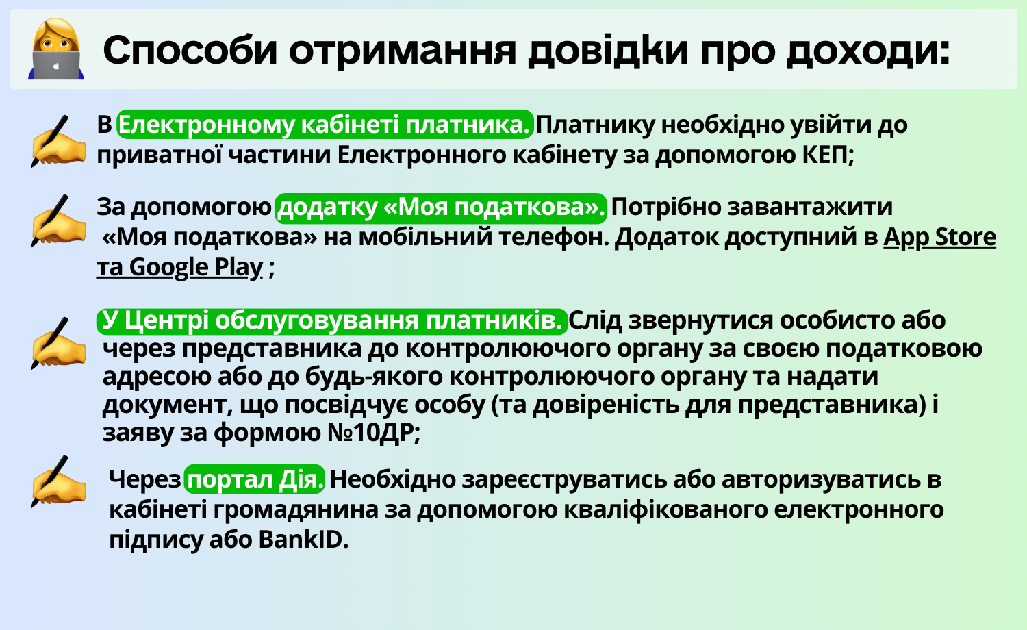 Способи отримання довідки про доходи