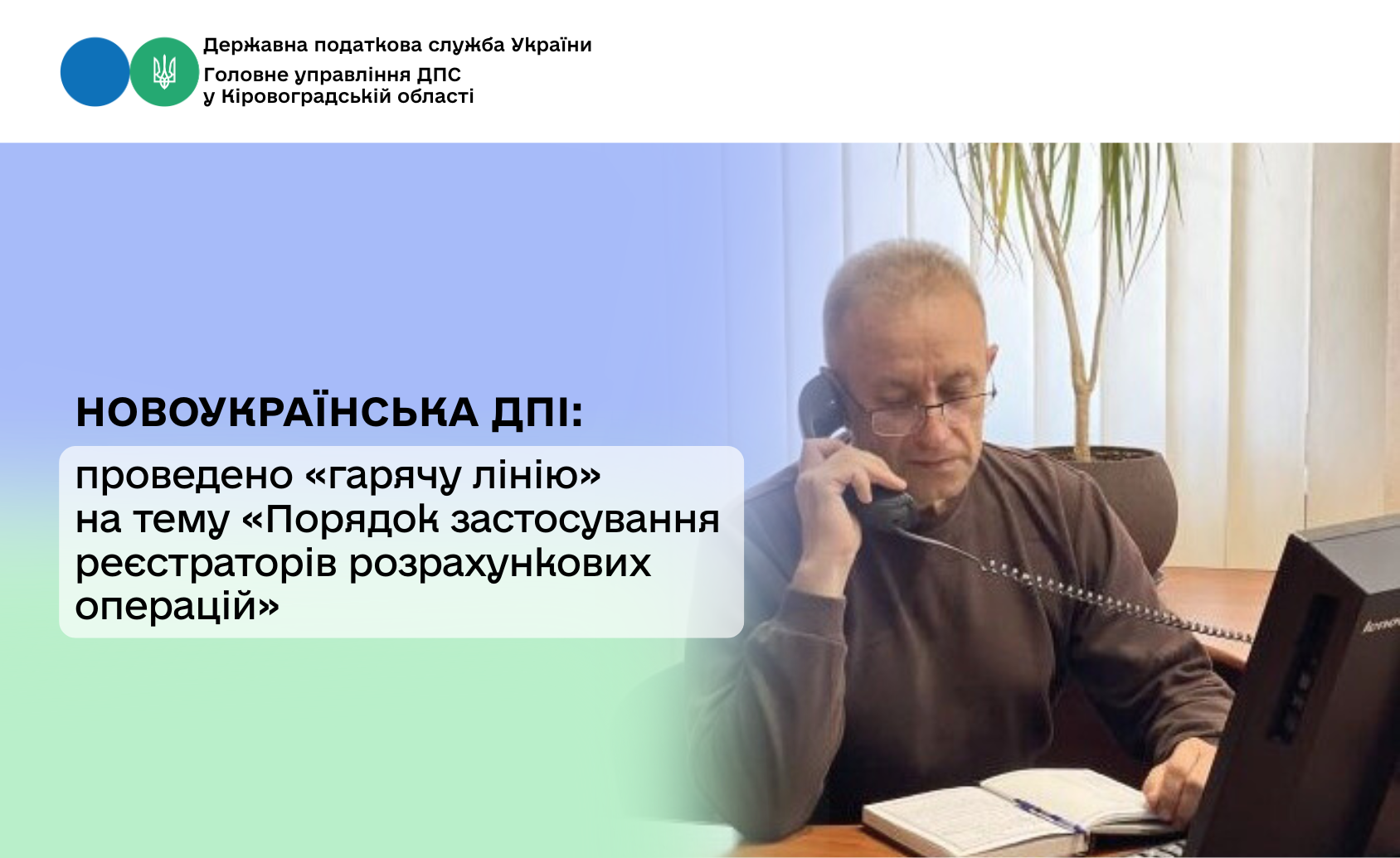Начальником Новоукраїнської ДПІ ГУ ДПС у Кіровоградській області Гальченко Сергієм 22.09.2025 року проведено сеанс телефонного зв’язку «гаряча лінія» на тему: «Порядок застосування реєстраторів розрахункових операцій».