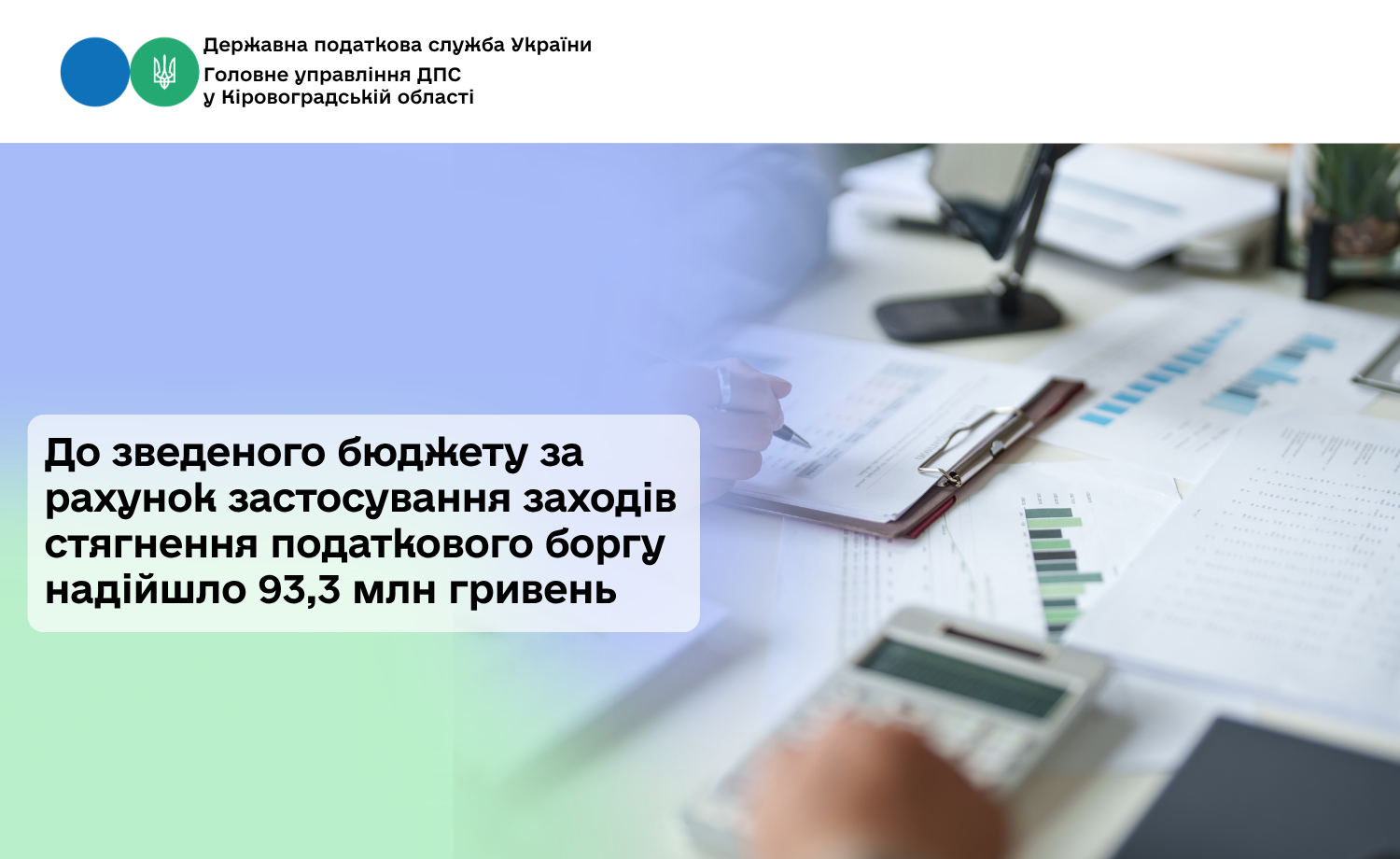 Загальна сума надходжень до зведеного бюджету за рахунок застосування заходів стягнення податкового боргу за січень-березень 2026 року склала 93,3 млн грн., у т. ч. до державного – 54,4 млн гривень.