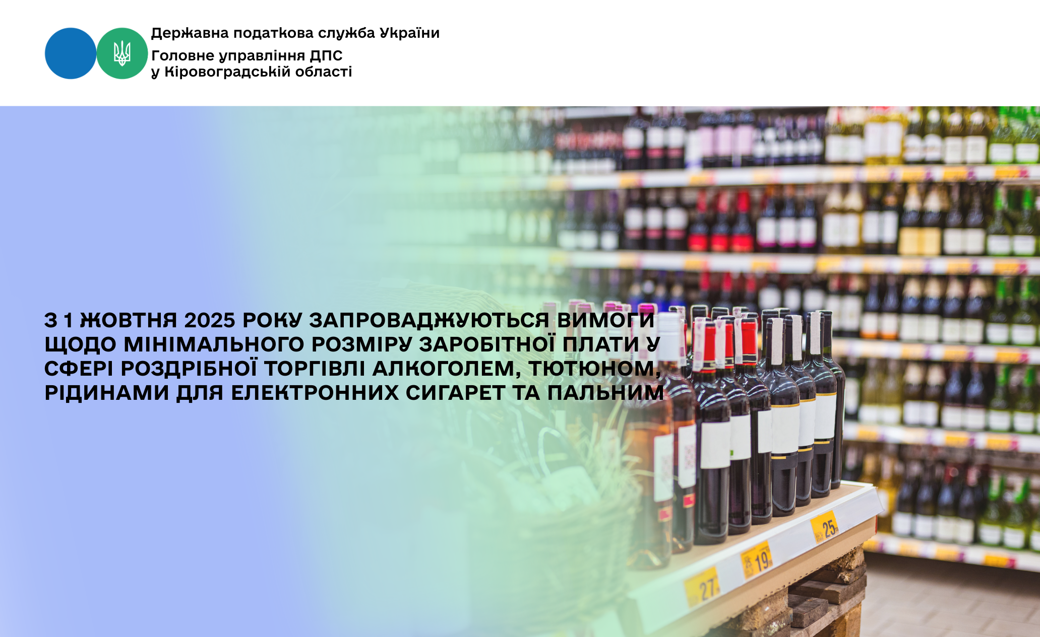 З 1 жовтня 2025 року запроваджуються вимоги щодо мінімального розміру заробітної плати у сфері роздрібної торгівлі алкоголем, тютюном, рідинами для електронних сигарет та пальним