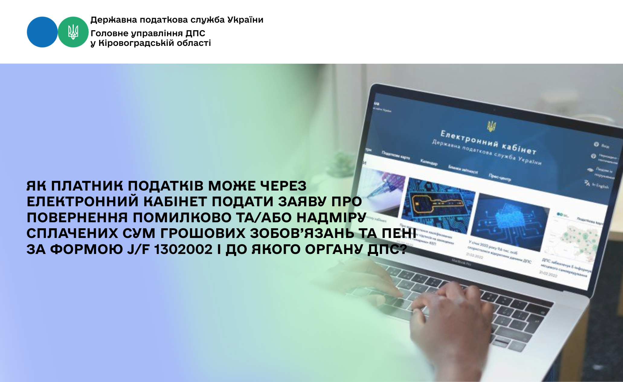 Як платник податків може через Електронний кабінет подати заяву про повернення помилково та/або надміру сплачених сум грошових зобов’язань та пені за формою J/F 1302002 і до якого органу ДПС?