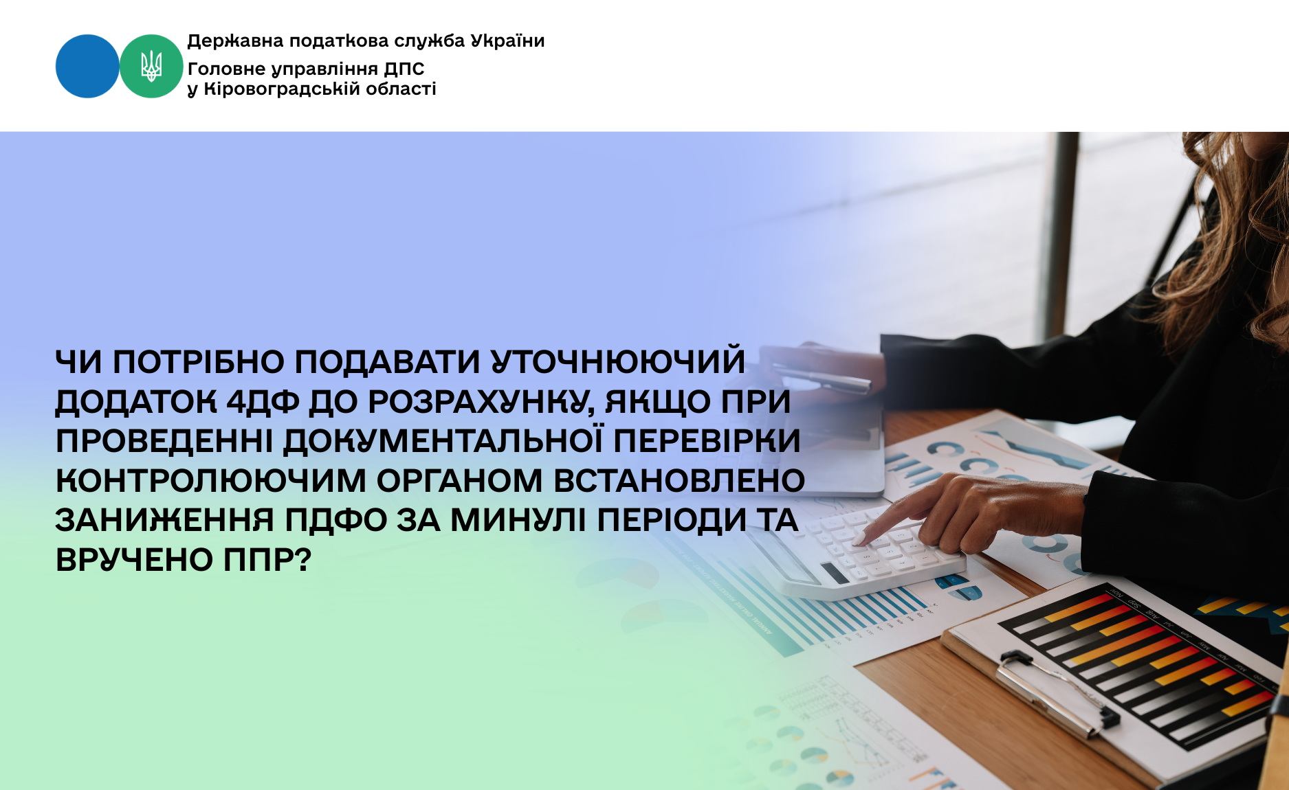 Чи потрібно подавати уточнюючий додаток 4ДФ до Розрахунку, якщо при проведенні документальної перевірки контролюючим органом встановлено заниження ПДФО за минулі періоди та вручено ППР?