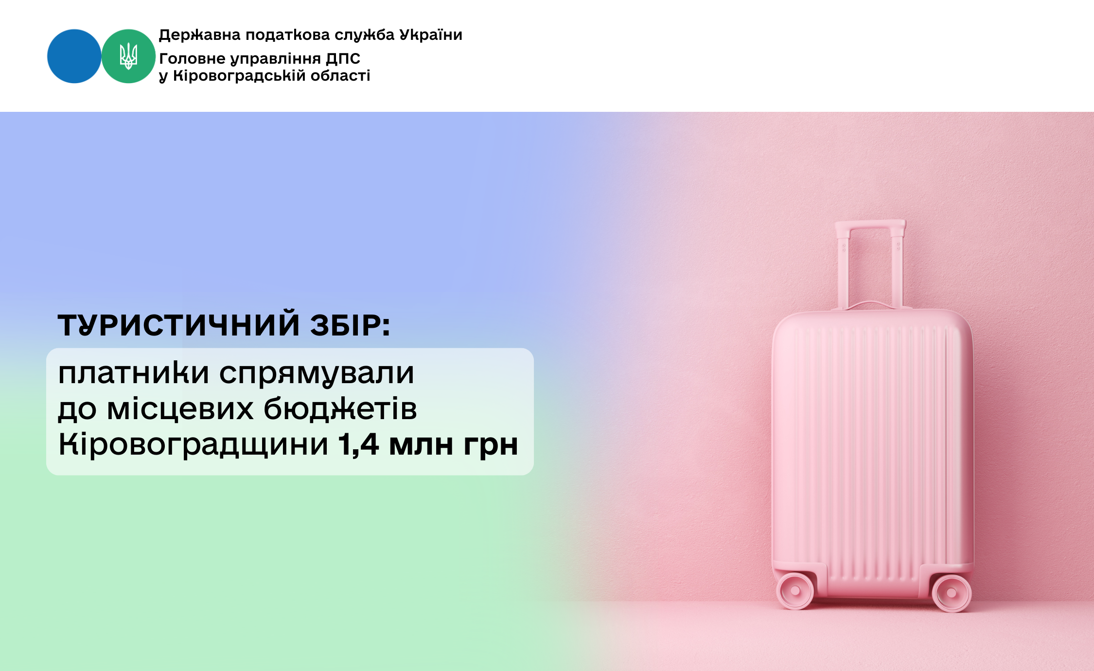 З початку 2025 року від платників до місцевих бюджетів Кіровоградщини надійшло 1 млн 407,5 тис. гривень туристичного збору. У порівнянні з січнем – вереснем 2024 року надходження збільшились на 155,2 тис. грн, або 12,4 відсотки.