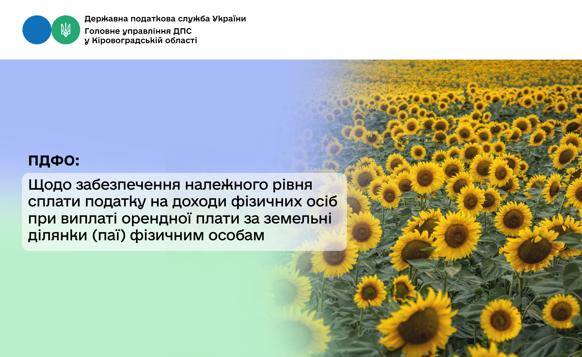 Головне управління ДПС у Кіровоградській області звертає увагу на необхідність забезпечення належного рівня сплати податку на доходи фізичних осіб (ПДФО) при виплаті орендної плати за земельні ділянки (паї) фізичним особам.
