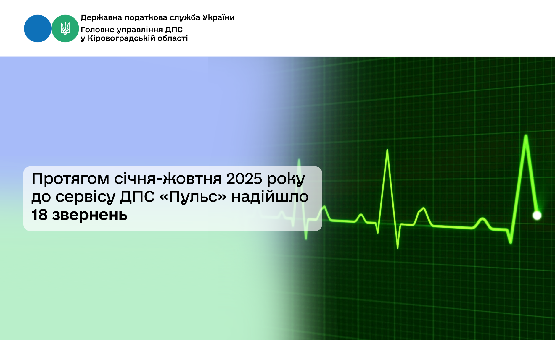 За інформацією сектору розгляду звернень громадян та доступу до публічної інформації управління організації роботи Головного управління ДПС у Кіровоградській області протягом січня - жовтня 2025 року до сервісу ДПС «Пульс» надійшло 18 звернень за наступною тематикою: