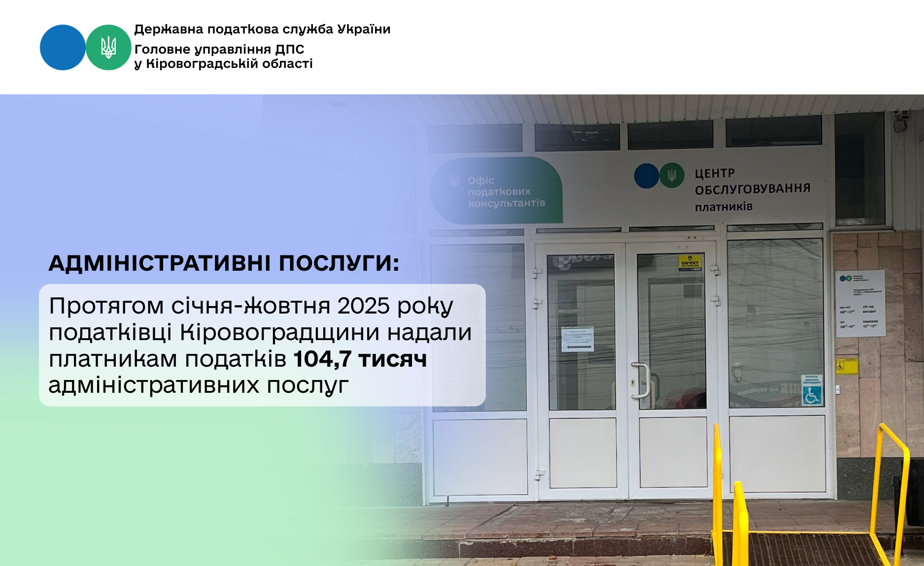 Головним управлінням ДПС у Кіровоградській області через центри обслуговування платників, місця прийому суб’єктів звернень та засобами комунікаційного зв’язку забезпечується надання 60 адміністративних послуг.