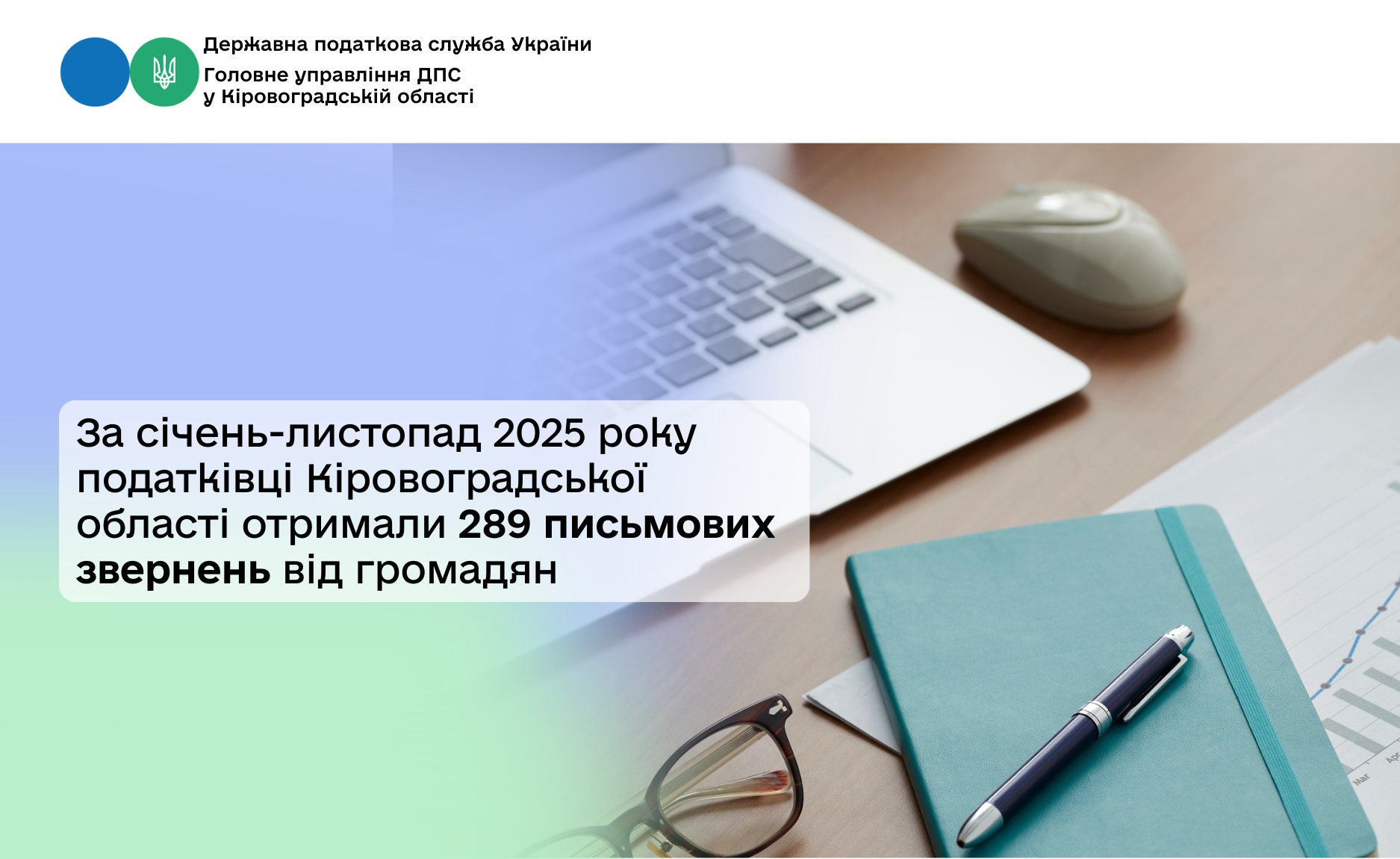 Протягом січня – листопада 2025 року до ГУ ДПС у Кіровоградській області надійшло 289 письмових звернень громадян (заяв).