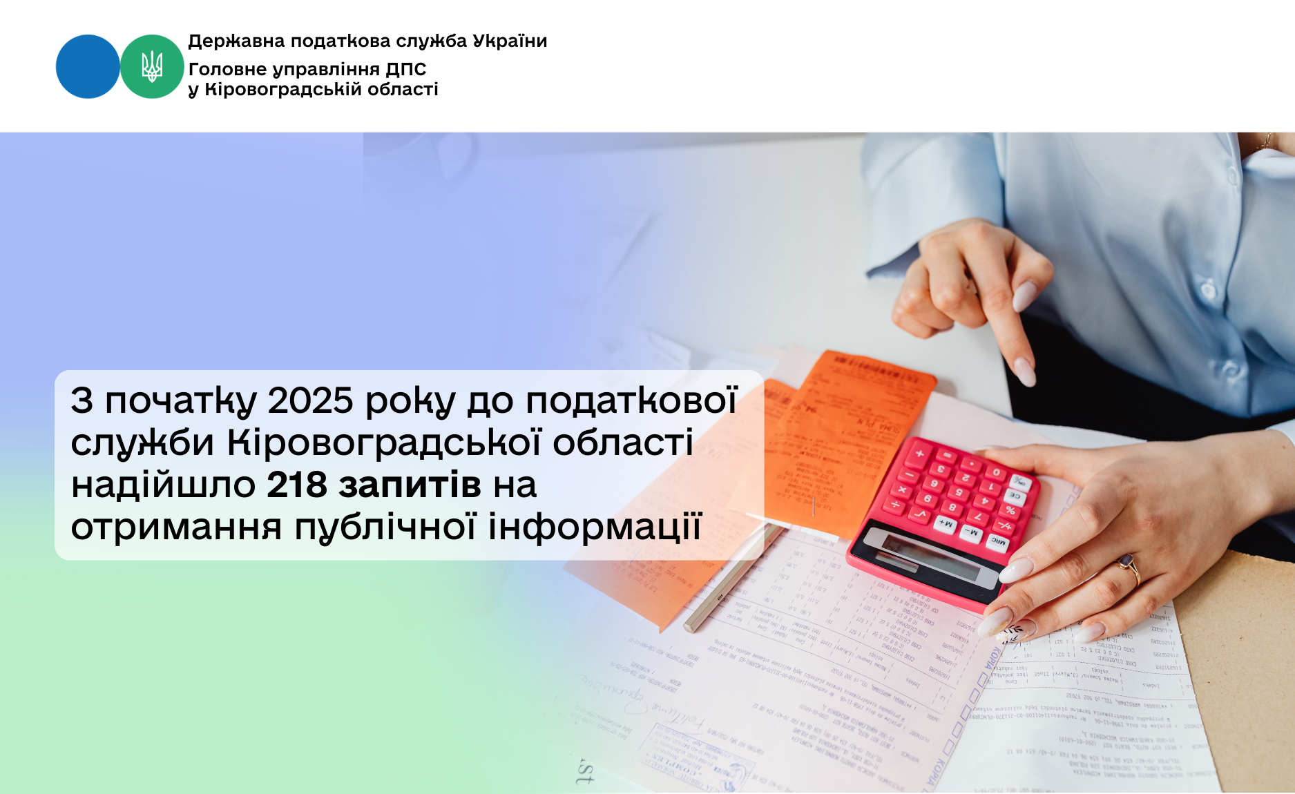 Протягом січня – листопада 2025 року до Головного управління ДПС у Кіровоградській області надійшло 218 запитів на отримання публічної інформації.