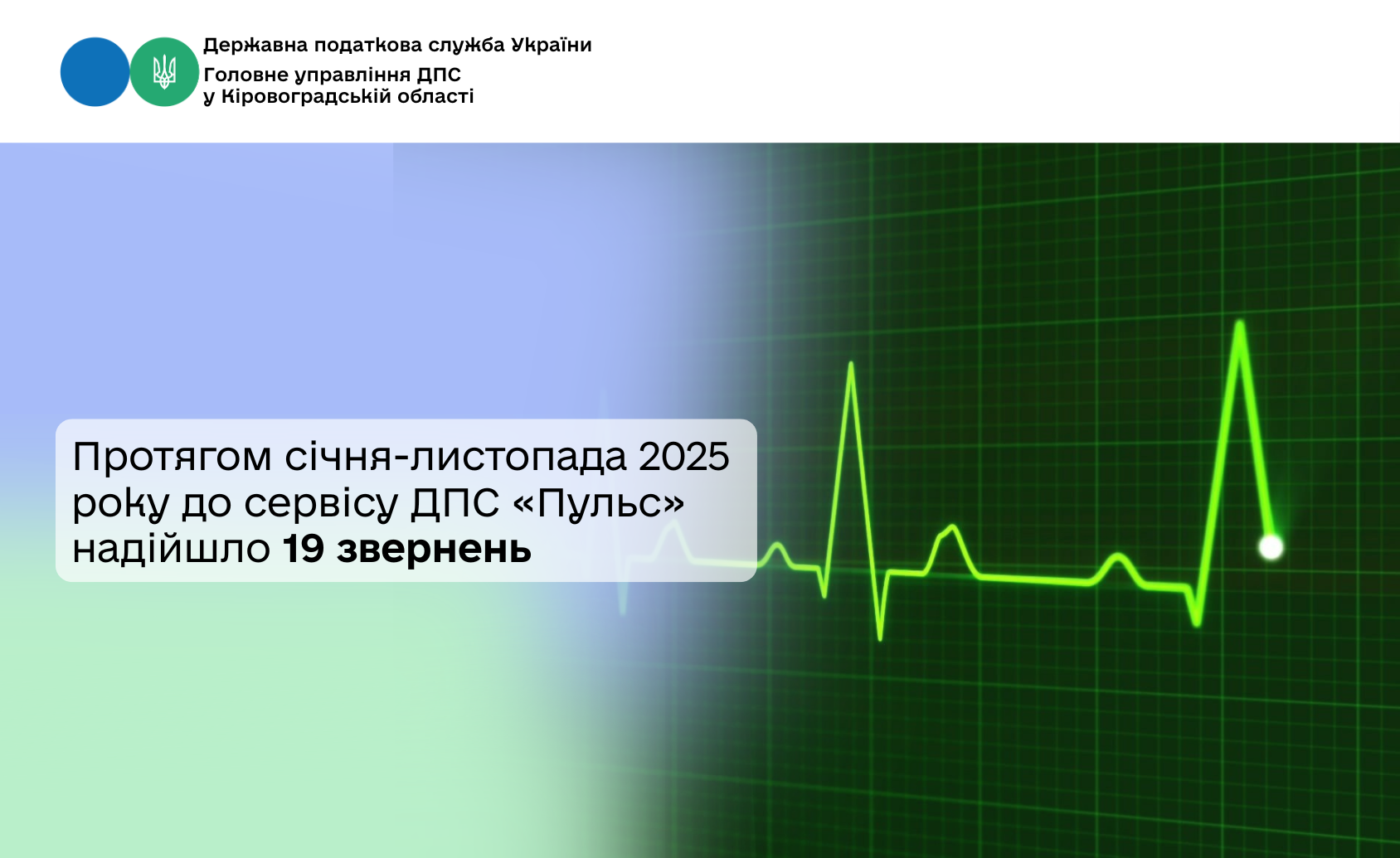 За інформацією сектору розгляду звернень громадян та доступу до публічної інформації управління організації роботи Головного управління ДПС у Кіровоградській області протягом січня - листопада 2025 року до сервісу ДПС «Пульс» надійшло 19 звернень за наступною тематикою: