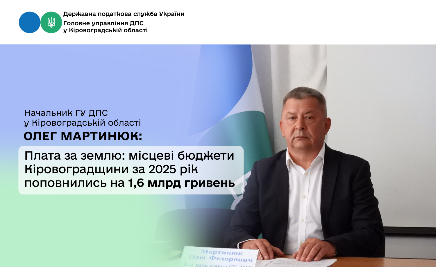 Протягом 2025 року до місцевих бюджетів Кіровоградської області від платників плати за землю надійшло 1,6 млрд гривень.