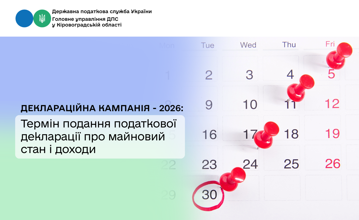 Головне управління ДПС у Кіровоградській області інформує, що податкова декларація про майновий стан і доходи (далі – податкова декларація) подається відповідно до ст. 179 Податкового кодексу України (далі – Кодекс).