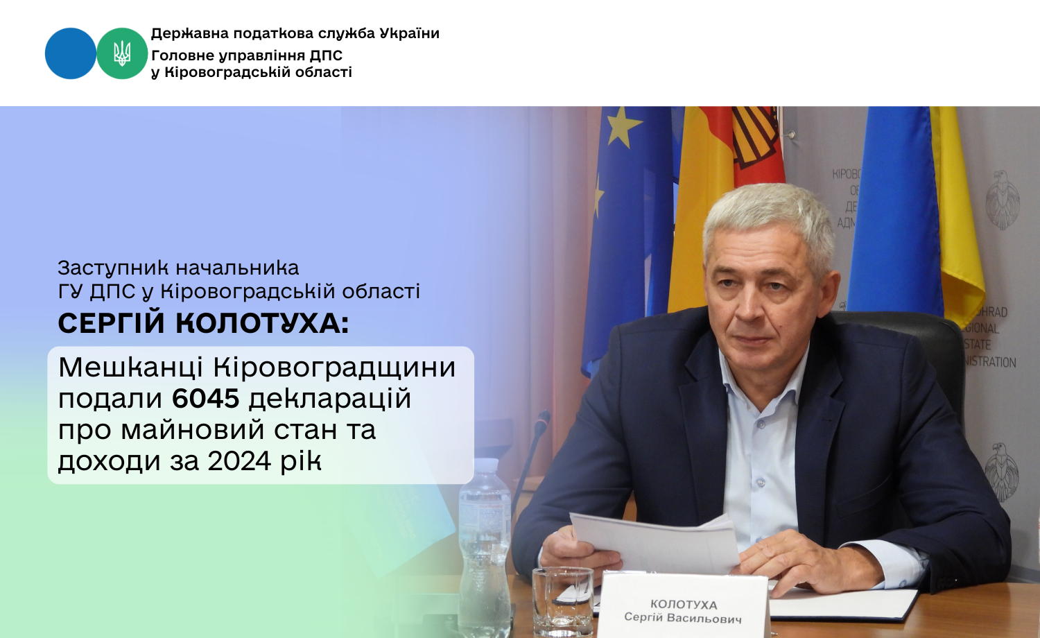 Як зазначив заступник начальника Головного управління ДПС у Кіровоградській області Сергій Колотуха у коментарі місцевим ЗМІ, у 2025 році органами ДПС області залучено до декларування 6045 громадян, у тому числі: 3180 – тих, хто зобов’язані задекларувати свої доходи та 2865 осіб – з метою одержання податкової знижки.