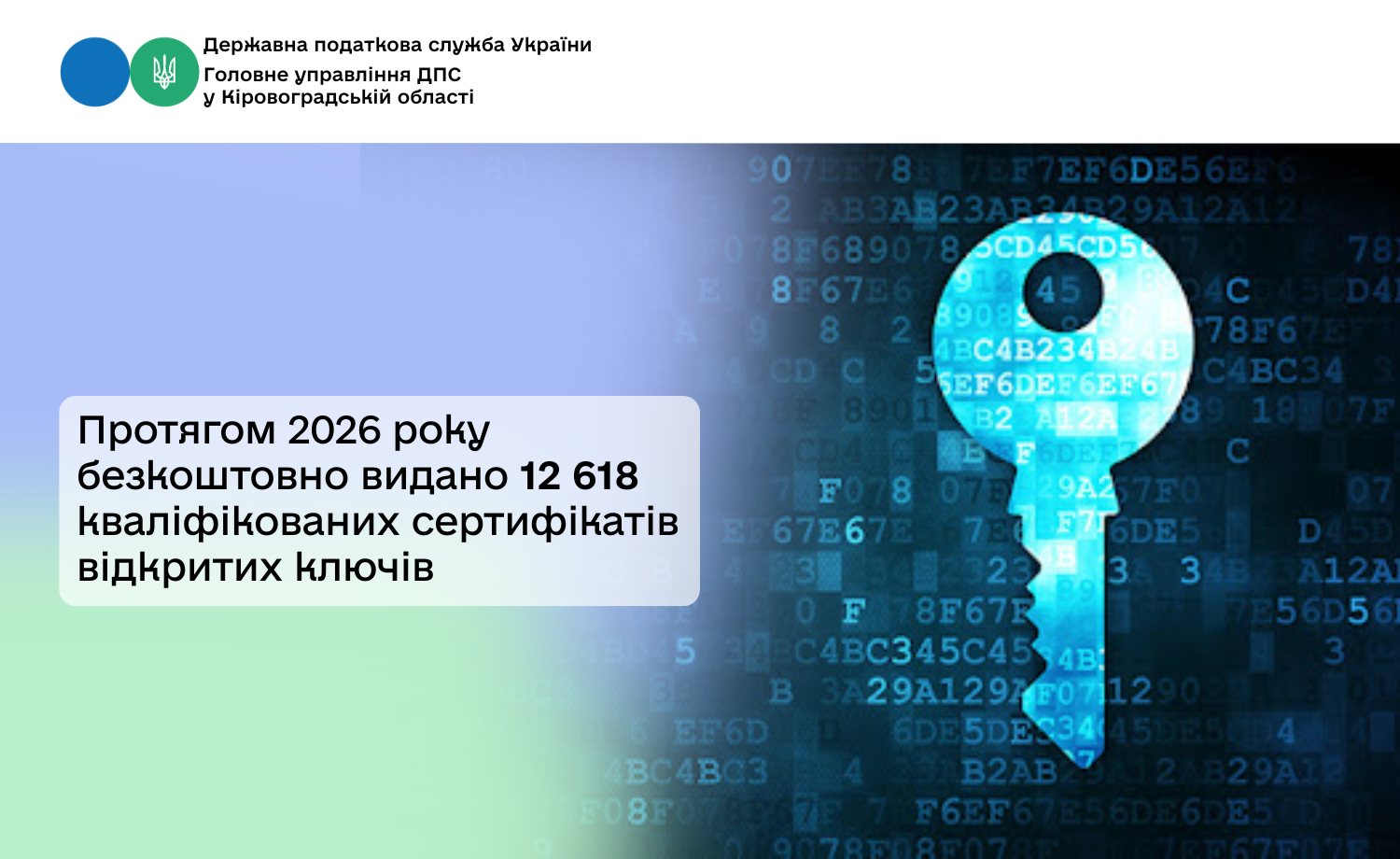 Протягом 2026 року безкоштовно видано 12 618 кваліфікованих сертифікатів відкритих ключів