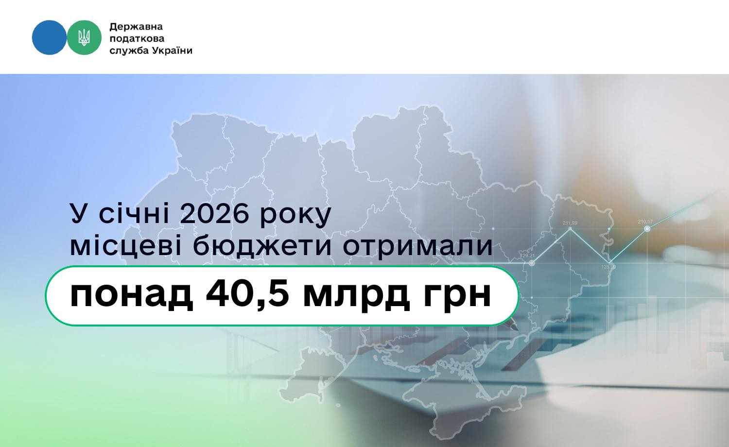 У січні 2026 року місцеві бюджети отримали понад 40,5 млрд гривень
