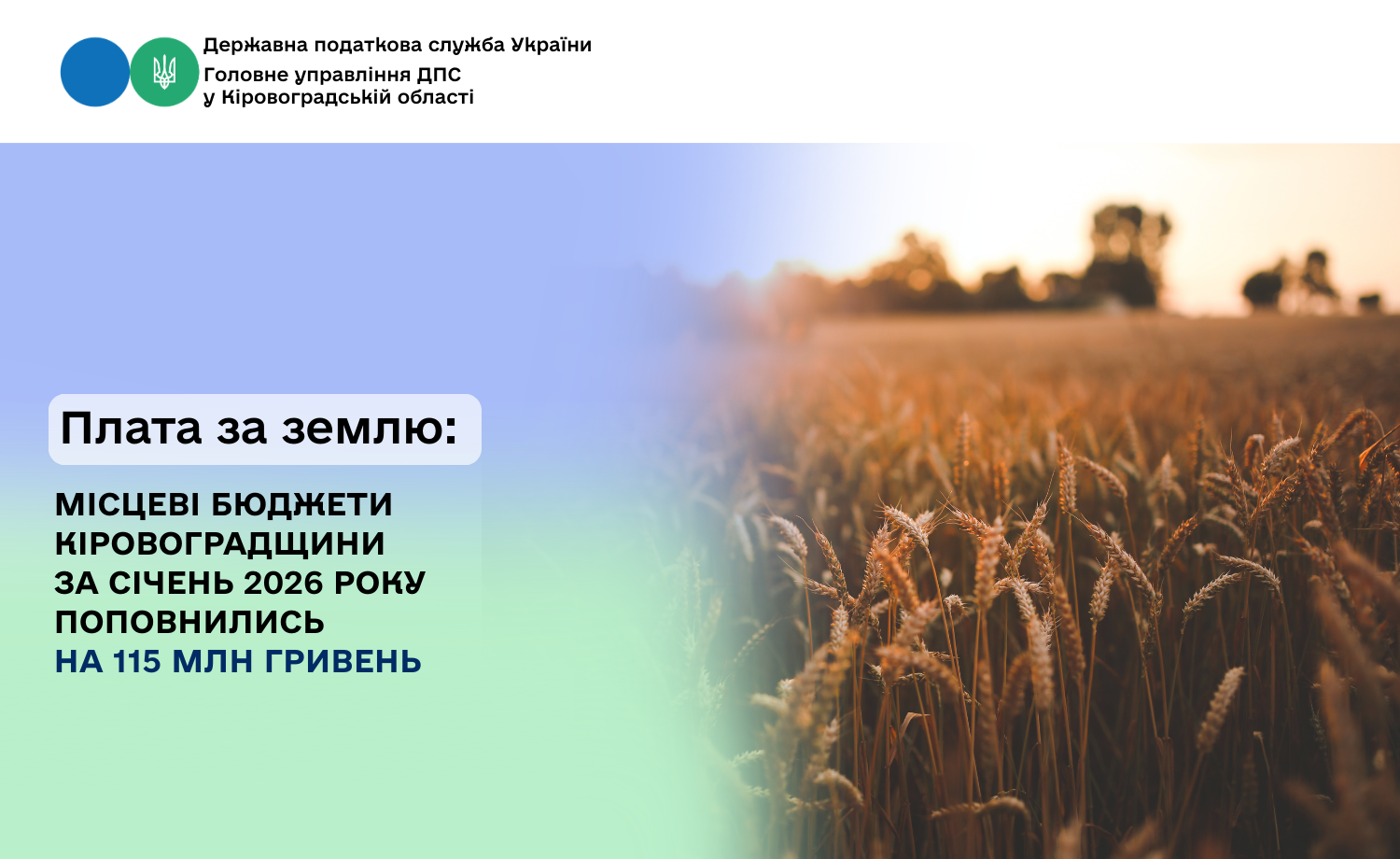 Протягом січня 2026 року до місцевих бюджетів Кіровоградської області від платників плати за землю надійшло 115 млн гривень.