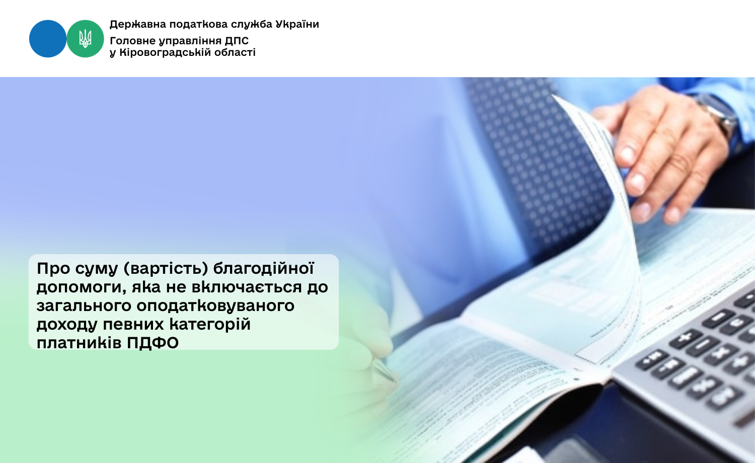 Головне управління ДПС у Кіровоградській області звертає увагу, що не включається до оподатковуваного доходу платників податку на доходи фізичних осіб (податок, ПДФО) благодійна допомога, що надається згідно з підпунктом 165.1.54 пункту 165.1 статті 165 Податкового кодексу України (далі – Кодекс):
