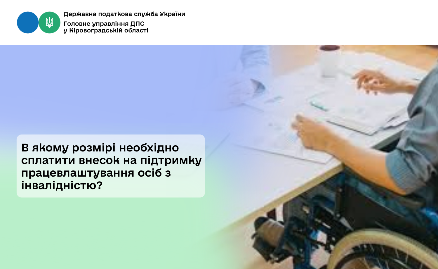 Головне управління ДПС у Кіровоградській області інформує, що з 1 січня 2026 року введено в дію Закон України від 15 січня 2025 року № 4219-IХ «Про внесення змін до деяких законодавчих актів України щодо забезпечення права осіб з інвалідністю на працю» (далі – Закон № 4219), яким внесено зміни до порядку працевлаштування осіб з інвалідністю, зокрема, до Закону України від 21 березня 1991 року № 875-XІІ «Про основи соціальної захищеності осіб з інвалідністю в Україні» (далі – Закон № 875).