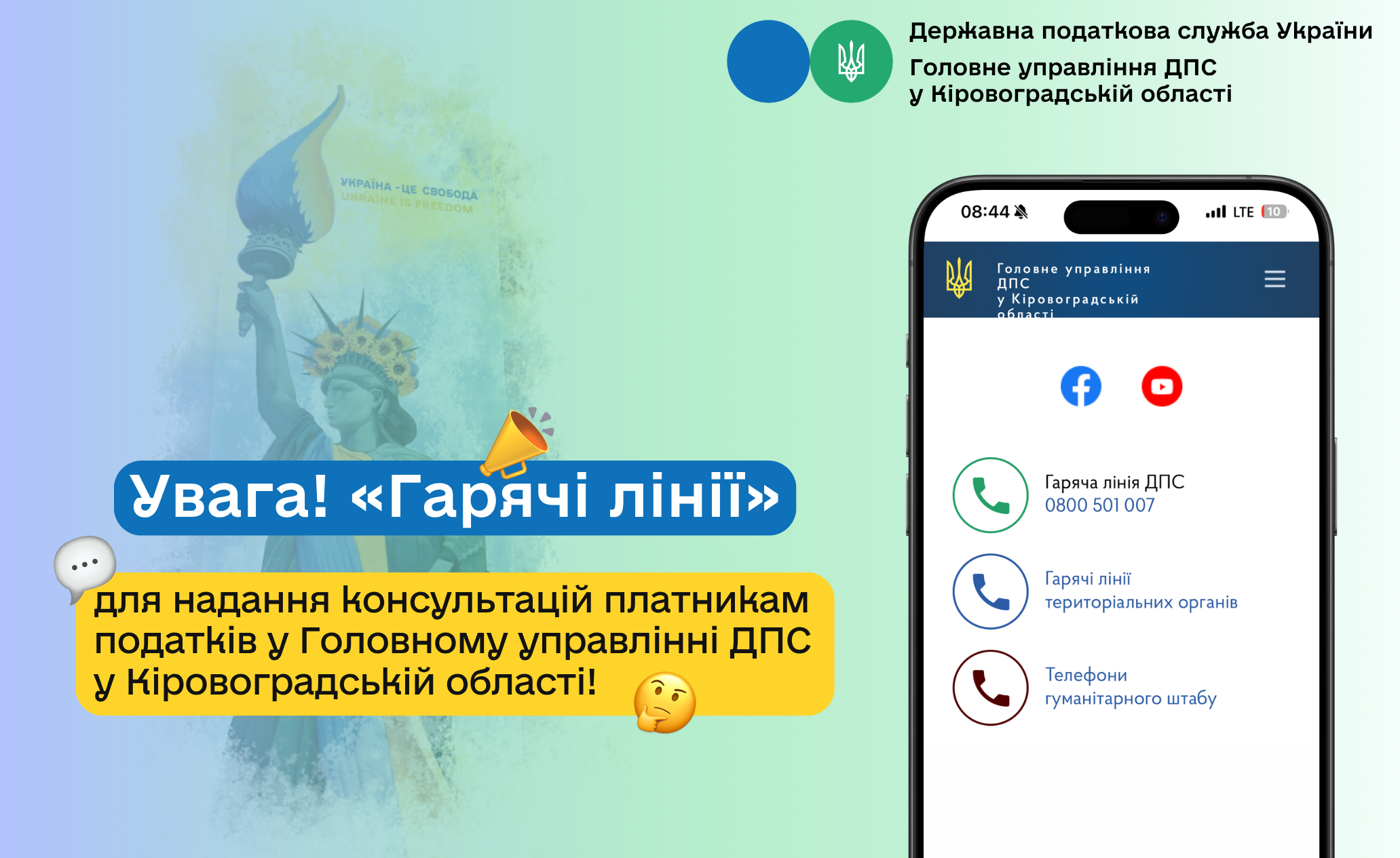 У Головному управлінні ДПС у Кіровоградській області працюють «гарячі лінії» для надання консультацій платникам податків: