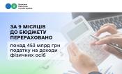 За 9 місяців до бюджету перераховано понад 453 млрд грн податку на доходи фізичних осіб