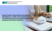 Головне управління ДПС у Кіровоградській області інформує, що відповідно до п.п. 170.7.3 п. 170.7 ст. 170 розд. IV Податкового кодексу України від 02 грудня 2010 року № 2755-VI (далі – ПКУ) не включається до оподатковуваного доходу сума нецільової благодійної допомоги, у тому числі матеріальної, що надається резидентами – юридичними або фізичними особами на користь платника податку протягом звітного податкового року сукупно у розмірі, що не перевищує суми граничного розміру доходу, визначеного згідно з абзацом першим п.п. 169.4.1 п. 169.4 ст. 169 ПКУ, встановленого на 01 січня такого року (у 2023 році – 3760,00 грн., у 2024 році – 4240,00 грн., у 2025 році – 4240,00 грн., у 2026 році – 4660,00 гривень).