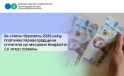 Левову частку від загальної суми надходжень складає податок на доходи фізичних осіб. Так, у січні-березні 2026 року до бюджетів громад надійшло 1 млрд 619,8 млн гривень. У порівнянні з січнем-березнем 2025 року надходження збільшились на 221,3 млн грн або 15,8 відсотків.