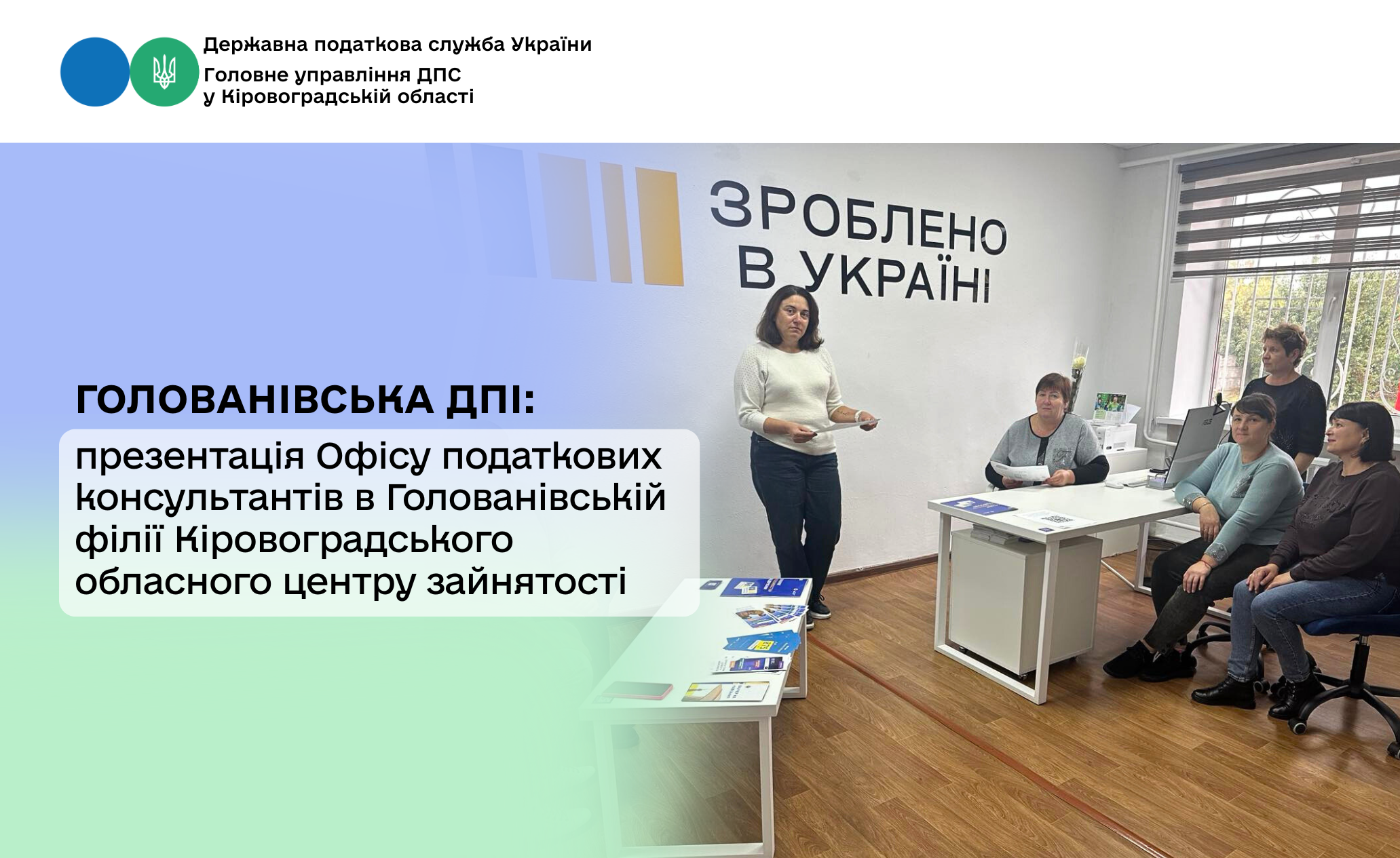 Начальником Голованівської ДПІ ГУ ДПС у Кіровоградській області Оленою Загородньою та головним інспектором ДПІ Наталією Мостовик було проведено зустріч з працівниками Голованівської філії Кіровоградського обласного центру зайнятості під час якої обговорили питання створення Офісу податкових консультантів.
